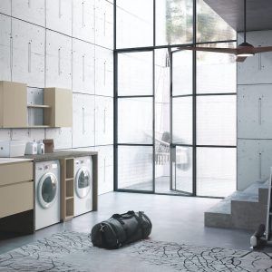 Laundry Deluxe è l’arredamento Puntotre in cui le classiche funzioni lavanderia vengono integrate in perfetta armonia con il design del bagno sfruttando intelligentemente gli spazi.